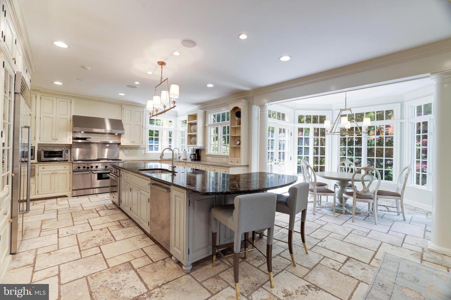Introducing 10005 Windy Hollow Road, an extraordinary French estate in the exclusive Falcon Ridge neighborhood of Great Falls. Situated on 1.72 private acres, this impressive property offers professionally landscaped grounds, extensive hardscaping, and a dreamy pool/spa combo for the perfect indoor/outdoor lifestyle. The elegant interior features quality craftsmanship and finishes - stone fireplaces, hardwood floors, custom built-ins and extensive molding, trim, and millwork throughout. The floor plan is thoughtfully laid out for elevated living and offers flexible spaces for formal and casual gatherings alike. Work from home in the wood-paneled office, or relax in the sunroom with a double-sided gas fireplace. The gourmet eat-in kitchen features top-of-the-line appliances and a spacious butler's pantry, perfect for hosting dinner parties! The 2-story family room off the kitchen showcases a stunning Palladian window with ample natural sunlight. The main level is rounded out with a formal dining room, sitting room and two half baths. 4 generous bedrooms upstairs all feature en-suite baths and custom closet space. The primary bedroom includes a cozy gas fireplace, cedar closets and a spa-like bath with a soaking tub and separate vanities. The walk-out lower level includes all the amenities your family needs - enjoy a wet-bar with wine storage, a full gym, and home theater. The full 5th bedroom and bath are perfect to host out of town guests or to use as an in-law suite. The charming ivy-covered carriage house offers two additional garage spaces and a full living space upstairs. This studio apartment has been updated with fresh paint and new carpets, and includes a full bath, working kitchenette and built-ins. Incredible outdoor living with a built-in bbq on the deck, multiple trellises and impressive stone features. Enjoy summertime right here in your own backyard with a heated built-in pool and spa. A grassy side yard is perfect for lawn games, playtime and letting pets run free. Take advantage of the private and serene setting whilst enjoying a friendly neighborhood feel that Falcon Ridge has to offer. Located in the desirable Langley High School pyramid and minutes to Tysons Corner, I-495 and the GW Parkway, this is true lifestyle property in the heart of Great Falls. Welcome home!